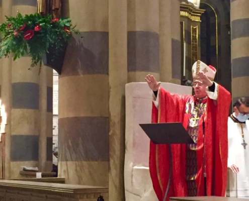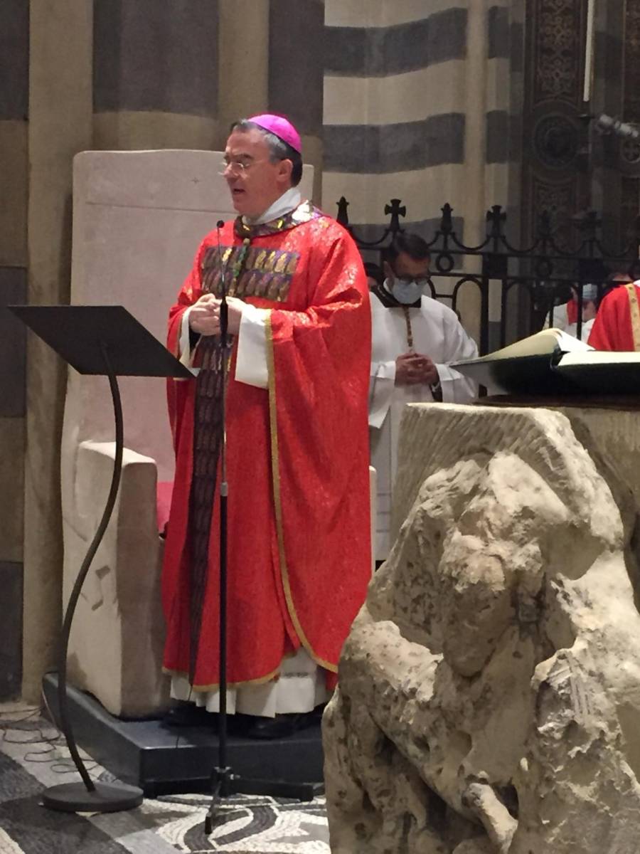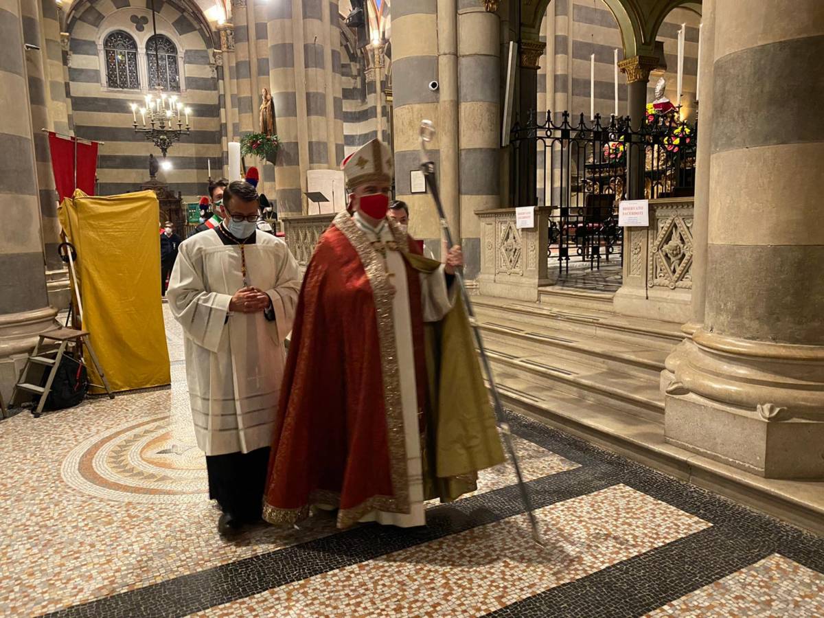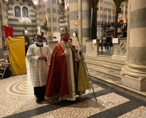 Alle 17.45 ha avuto luogo l’accensione del cero votivo a Sant’Evasio da parte del Sindaco Federico Riboldi, mentre alle ore 18.00 ha avuto inizio la celebrazione eucaristica. A concelebrare con Mons. Vescovo, il Vicario Generale Mons. Giampio Devasini, alcuni canonici del Capitolo della Cattedrale e diversi sacerdoti del clero diocesano. Nel corso dell’omelia, il Vescovo Gianni ha invitato i fedeli diocesani a non lasciarsi sopraffare dalla paura cieca di questi giorni, ma di continuare, con fede, a tenere fisso lo sguardo su Gesù.