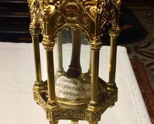 “Prima di messa abbiamo compiuto un gesto che vorrei diventasse una tradizione di questa festa. Il Sindaco di Casale ha offerto un cero a nome della Città e lo ha acceso davanti all’urna di Sant’Evasio. È un gesto dal significato molto importante. È un gesto devozionale, ma che ha un richiamo simbolico eloquente: invochiamo l’intercessione di Sant’Evasio, ricorriamo a colui che da secoli è invocato patrono della città e della diocesi. Quella fiammella sta a significare la nostra invocazione e la nostra fede vacillante e tremolante di fronte a Dio, ma pur sempre accesa, che ci permette di vedere nel buio e nell’oscurità della vita”.