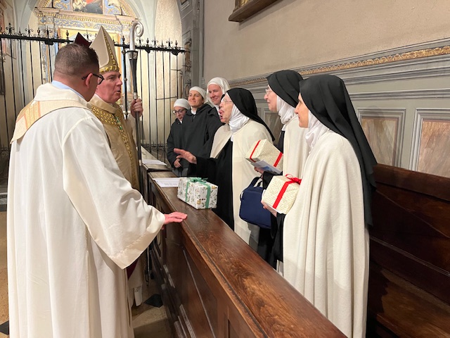 Alle religiose il Vescovo ha donato un’icona di Cristo Pantocratore e una statuina della Madonna di Crea.