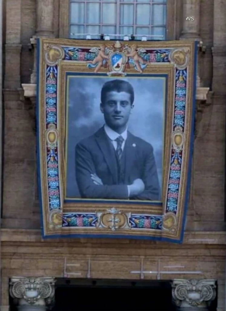 Ha concluso: “Perfino quando la malattia li ha colpiti e ha stroncato le loro giovani vite, nemmeno questo li ha fermati e ha impedito loro di amare, di offrirsi a Dio, di benedirlo e di pregarlo per sé e per tutti. Un giorno Pier Giorgio disse: ‘Il giorno della morte sarà il più bel giorno della mia vita’; e sull’ultima foto, che lo ritrae mentre scala una montagna della Val di Lanzo, col volto rivolto alla meta, aveva scritto: ‘Verso l’alto’. Del resto, ancora più giovane, Carlo amava dire che il Cielo ci aspetta da sempre, e che amare il domani è dare oggi il meglio del nostro frutto. Carissimi, i Santi Pier Giorgio Frassati e Carlo Acutis sono un invito rivolto a tutti noi, soprattutto ai giovani, a non sciupare la vita, ma a orientarla verso l’alto e a farne un capolavoro. Ci incoraggiano con le loro parole: ‘Non io, ma Dio’, diceva Carlo. E Pier Giorgio: ‘Se avrai Dio per centro di ogni tua azione, allora arriverai fino alla fine’. Questa è la formula semplice, ma vincente, della loro santità. Ed è pure la testimonianza che siamo chiamati a seguire, per gustare la vita fino in fondo e andare incontro al Signore nella festa del Cielo”.