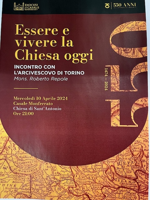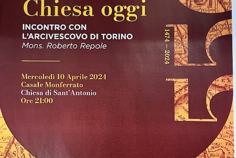 L’arcivescovo di Torino e vescovo di Susa monsignor Roberto Repole torna a Casale per un incontro nella chiesa di Sant’Antonio. Mercoledì 10, alle 21, parlerà su un tema di grande attualità: “Essere e vivere la Chiesa oggi”. La serata è stata fortemente voluta dal vescovo mons. Gianni Sacchi nel contesto degli eventi legati al 550° anniversario dell’istituzione della Diocesi.