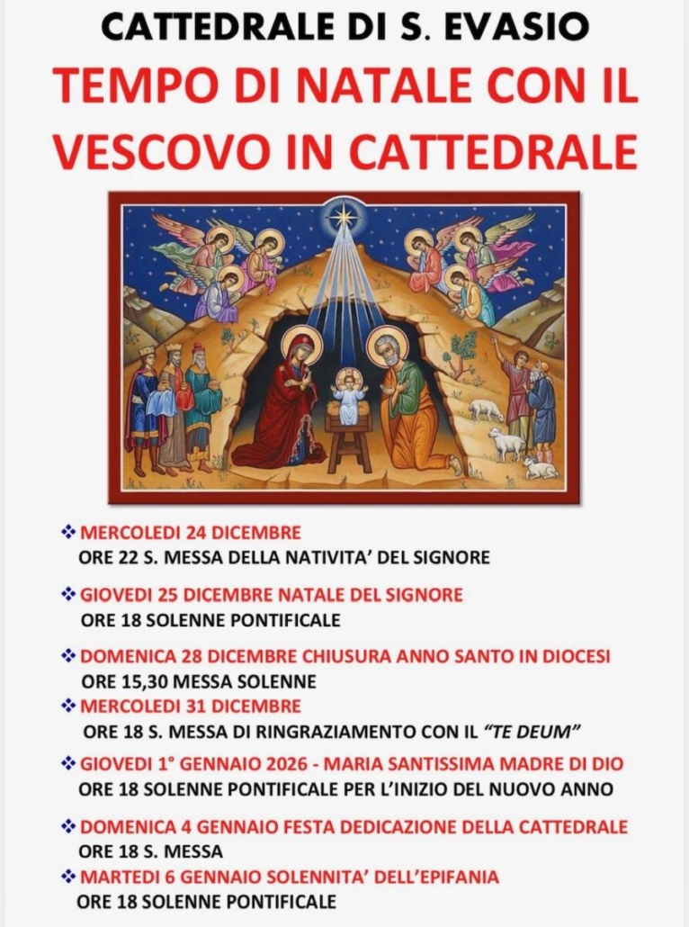 Ecco il prospetto delle celebrazioni del tempo di Natale in Cattedrale con il vescovo mons. Gianni Sacchi.